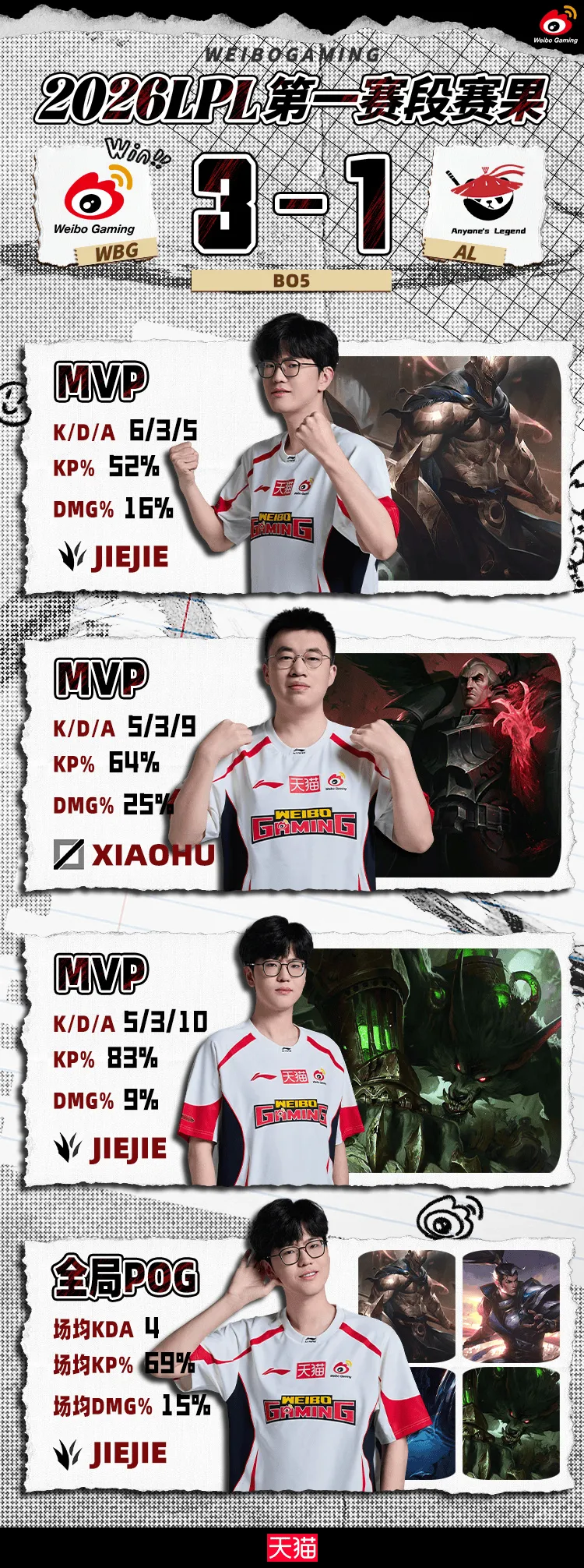 虎扑03月05日讯 战胜AL后,WBG发文:第一赛段的旅程还在继续,我们败者组决赛见
